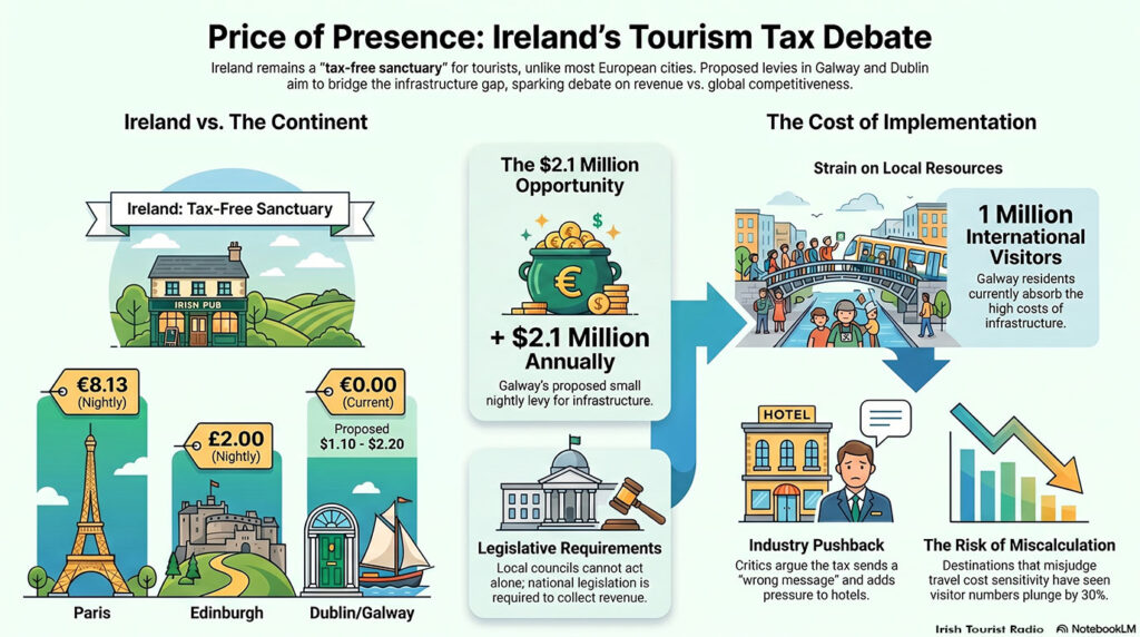 While most European travelers have long grown accustomed to seeing a modest tourism surcharge tacked onto their hotel bills, a quiet, almost invisible acknowledgment that visiting somewhere beautiful isn’t entirely free, Ireland remains a curious holdout, a kind of tax-free sanctuary in a continent increasingly comfortable with the practice.